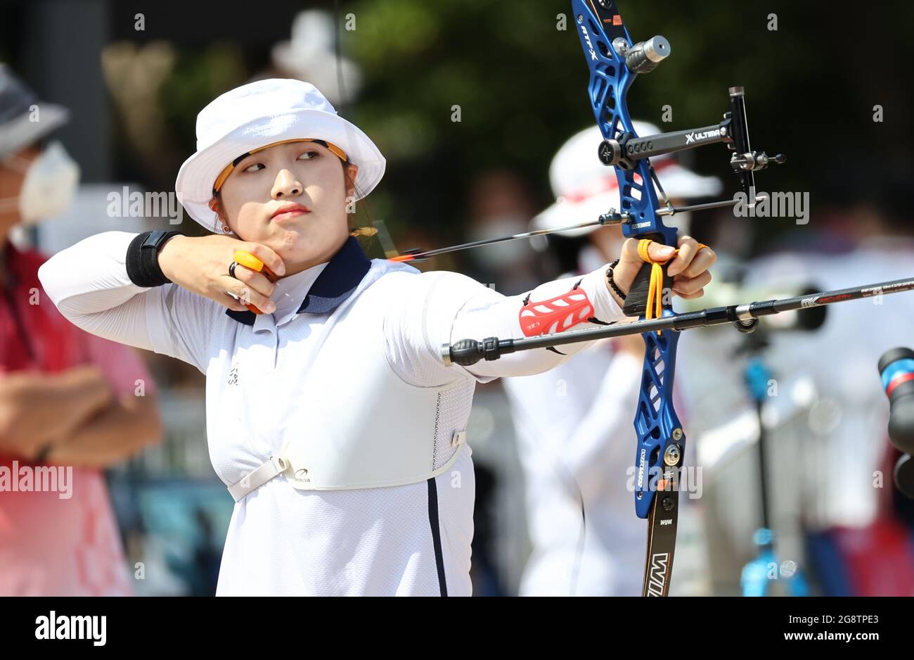 23rd July 2021 23rd July 2021 Women S Archery Individual Ranking Round South Korean Archer Jang Min Hee Aims For The Target At The Women S Individual Ranking Round At Yumenoshima Park Archery Field In